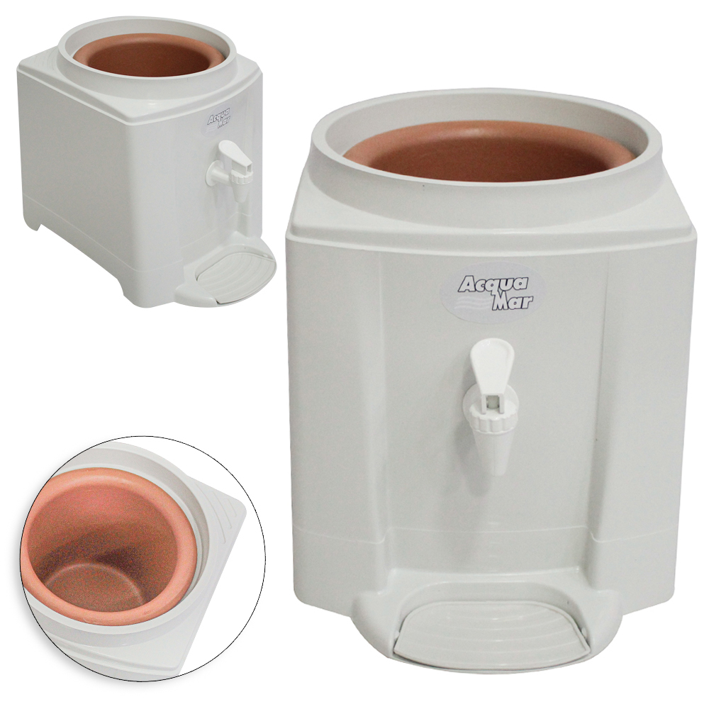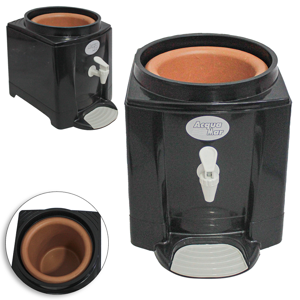 SUPORTE PARA GALAO DE AGUA DE INOX COM TORNEIRA E CUBA DE BARRO PRETO / BRANCO